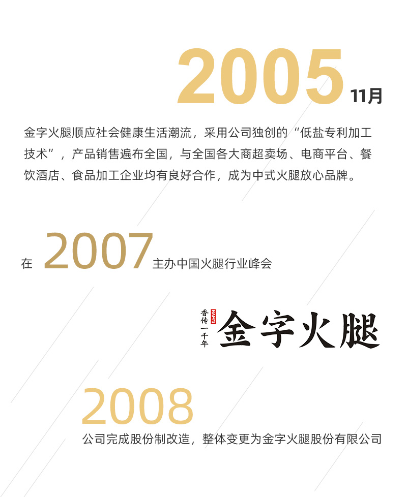 金字火腿股份有限公司是一家專業(yè)生產(chǎn)傳統(tǒng)肉制品的現(xiàn)代化食品加工企業(yè),公司是《地理標志產(chǎn)品-金華火腿》國家標準、