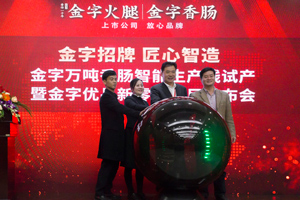 11月23號,由金字火腿主辦的“金字萬噸浙味香腸智能生產(chǎn)線試投產(chǎn)暨金字優(yōu)品新零售發(fā)布會”在浙江省農博會上隆重舉行,這意味著金字火腿將全面發(fā)力新零售精準營銷,不斷開拓香腸等傳統(tǒng)肉制品千億市場。浙江省農業(yè)廳、金華市相關領導、新零售行業(yè)精英出席了本次發(fā)布會,共同見證了這一盛況。在大咖云集的發(fā)布會現(xiàn)場,金字香腸獲得了大家的交口稱贊。對此,金字生產(chǎn)負責人告訴記者,近日試產(chǎn)的金字萬噸香腸智能生產(chǎn)線,是從德國引進的智能化香腸生產(chǎn)線,擁有完備的可追溯系統(tǒng)、智能化車間管理系統(tǒng),標準化生產(chǎn)將大幅提高生產(chǎn)效率,確保